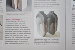 Publicatie van de "Wendy vaas" in het KLEI Keramiek Magazine. Publicatie in het onderdeel "Kleigalerij" met als thema "Duo-objecten". November-december nummer 6; 43e jaargang.